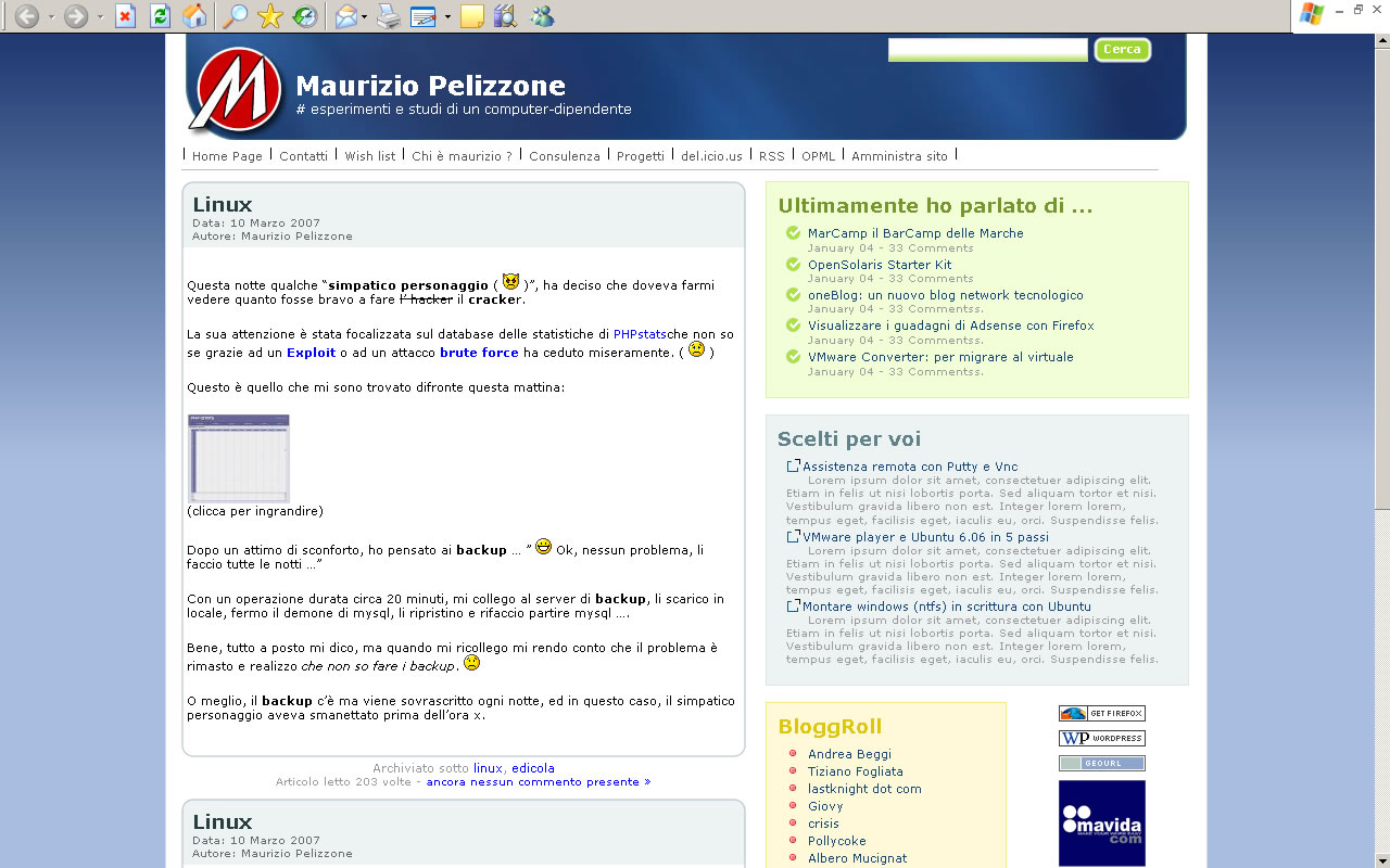 Mi manca ancora la parte di visualizzazione per i commenti e trackback, ed anche la pagina per la gestione degli archivi ( post per categoria, per mese o per autore ) che vorrei rendere più simile al risultato di un motore di ricerca, con solo il titolo e le prime riche del post.